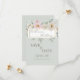 Belle carte de mariage moderne élégante avec fleurs en or faux sur fond vert pour toutes saisons. Les noms des mariés sont écrits en calligraphie fantaisie. Une typographie simple et chic est également ajoutée pour finir toutes les autres informations. Une invitation de mariage sophistiquée et chic pour n'importe quelle saison de l'année.