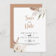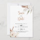 Ce boho rustique élégant mariage floral sauf la date est parfait pour un mariage de destination. Le design est composé de crème d'aquarelle, de fleurs blanches, brunes et d'herbe de pampas verte dans d'élégants bouquets.