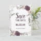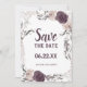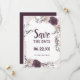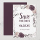 Floral d'hiver moderne avec roses violettes profondes et roses rousses. Save the Date est écrit dans une grande combinaison de polices tendance. Votre date de mariage est écrite en gros caractères gras et vos noms suivent. Tout le texte peut être modifié. Cet article fait partie de la collection Purple Sage. Vous pouvez utiliser ses composants pour créer un jeu unique de papier à lettres de date.