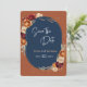 Mariage floral élégant d'automne orange marine marine Enregistrer la date. Préparez la scène pour votre mariage avec cette élégante carte d'automne orange et florale marine Enregistrer la date. Doté d'une riche palette de couleurs, d'une marine profonde et d'une orange de terre cuite chaude, accentuée par d'élégantes fleurs d'automne, ce design saisit parfaitement l'essence d'une fête d'automne chic. Une façon sophistiquée et intemporelle d'annoncer votre grand jour, en veillant à ce que vos invités gardent la date pour votre mariage inoubliable.