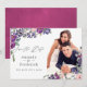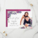 Élégante carte de mariage magnétique avec des fleurs violettes et prunes, teintées de vert sauge et de rose blush, conçue pour être personnalisée rapidement et facilement selon les spécificités de votre événement.