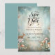 Save The Date Mariage forestier turquoise et de pêche enchantée