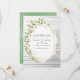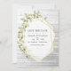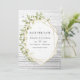Invitation de mariage rustique de pays de barnes de feuilles d'aquarelle vert sauge et blanc avec cadre géométrique doré. Idéal pour tout thème donné ou mariage de jardin.