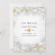 Mariage enregistrer la carte de date avec une texture de marbre avec un cadre géométrique or et un retour en marbre avec des influences dorées.