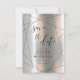 Les pièces de cette suite mariage, comme cette passionnante carte "Save the Date", présentent des accents de script manuscrits modernes et un arrière - plan métallique argenté élégant, surmonté d'un motif géométrique délicat en noir de base. Les initiales de la mariée et du marié au verso et le libellé "Enregistrer la date" sur le devant peuvent être customisés à l'aide du modèle fourni. Cherchez ID648 pour voir toutes les pièces de cet ensemble élégant.