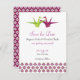 Des grues en papier fantaisistes qui s'embrassent, disposées pour former un cœur et des fleurs graphiques ornementales ornent ce carton d'invitation de mariage, donnant le ton pour votre mariage sur le thème Zen ou Asiatique. Les couleurs peuvent être personnalisées pour s'adapter à votre motif.