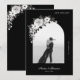 Surprenez vos proches avec cette élégante carte de Save the Date, mettant en vedette votre photo personnalisée en arche, des fleurs en noir et blanc et du texte modifiable. Ajoutez facilement vos propres détails en cliquant sur l'option "personnaliser".