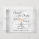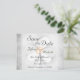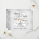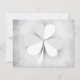 Ce faire-part de mariage Save the Date présente un trèfle blanc à trois feuilles sur un arrière - plan gris grinçant. Le texte est gris, les noms sont vert foncé avec un orange. Il conviendra à tous les faire-part mariage et conviendra aux mariages de la fête de la Saint-Patrick et de l'Irlande. ^