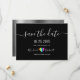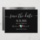 Moderne, simple, minimaliste, amusant mariage noir et blanc lgbt enregistrer l'invitation de la date avec coeur arc-en-ciel coloré mignon et cool rugueux arrière - plan métallique argent.