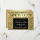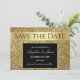 Annoncez votre jour spécial avec style avec notre invitation moderne à sauver la date à paillettes noires et or ! Ce design élégant allie glamour et sophistication chic, ce qui en fait le prélude parfait à votre célébration de mariage luxueux. Captivez l'attention de vos invités avec une touche d'étincelle et une esthétique intemporelle. Rendez votre moment inoubliable encore plus spécial !