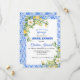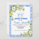 Elle a trouvé son Main Squeeze Le thème de célébration de mariage du citron est idéal pour un mariage d'été. Les fruits d'agrumes, qui sont rafraîchissants et frais, font toujours de belles présentations et rafraîchissements. La collection de citrons de Jenny combine des citrons peints élégants avec des carreaux bleus méditerranéens. Les carreaux de ce design forment un cadre bleu. Il est rehaussé par un mince cadre doré.