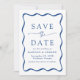 Annoncez votre prochain mariage en style avec notre mariage Modern Wavy Frame enregistrer les dates! Le design présente vos noms et détails mariages encadrés par un cadre bleu ondulé contrastant avec un arrière - plan blanc. Ce mélange exquis de design moderne et rétro assure que votre sauvegarde de la date n'est pas seulement un rappel de votre célébration à venir, mais un gardien chéri qui capture l'essence de votre histoire d'amour.