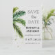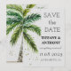 Cartes de mariage moderne d'été sur la plage océane avec palmiers. Cartes de faire-part de mariage de plage tropicale côtière.