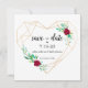 Félicitations ! Sauvegarder la date est la première étape pour définir le ton de votre mariage. Impressionnez vos invités avec cette carte de sauvegarde de date moderne avec un coeur géométrique et des roses rouges. Le verso de la carte personnalise votre photo préférée de vous et votre fiancé.