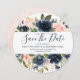 Save The Date Mariage Moderne Fleurs Aquarelles Rose & Bleu Mari
