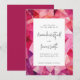 Carte de mariage moderne et audacieuse de couleur magenta pour annoncer votre mariage, avec une peinture de style abstrait dans des nuances de magenta, de fuchsia, de rose chaud et de violet. Noms des mariés en écriture calligraphique moderne et une nuance assortie de magenta en couleur unie au verso. La police peut être modifiée dans l'outil de conception si vous le souhaitez ! Le choix idéal pour un mariage en galerie d'art, un mariage artistique, une célébration de mariage contemporain ou tout autre événement.