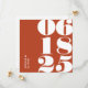 Mariage minimaliste moderne carré Enregistrer l'invitation Date avec votre date mariage dans une grande typographie en gras, les noms de l'époux sur le devant et le texte minimal sur le dos. Palette de couleurs audacieuses avec Terracotta Burnt Orange. Des éléments de texte entièrement personnalisables et vous pouvez modifier toutes les couleurs si vous le souhaitez - utilisez l'outil de conception pour effectuer les modifications que vous souhaitez.