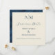 De magnifiques monogrammes de mariés en haut de cette belle carte d'annonce de mariage. Fond écru avec police de caractères bleu foncé pour coordonner avec le dos bleu en détresse de cette invitation élégante. Absolument époustouflant.