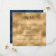 De beaux monogrammes de mariés en haut de cette belle carte d'annonce de mariage. Fond doré faux avec police de caractères bleu foncé pour coordonner avec le dos bleu en détresse de cette invitation élégante. Absolument époustouflant.