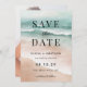 Mariage Moderne sur la Plage d'Été Océanique Enregistrez la Date - le moyen parfait pour annoncer la date de votre mariage à votre famille et à vos amis. Une belle plage de sable avec des vagues de l'océan bleu. L'invitation comprend également votre photo préférée.
