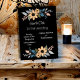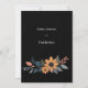 Ce design de carte mariage présente un arrangement floral charmant avec des tournesols et des feuillages complémentaires, le tout entouré d'un arrière - plan noir élégant. La conception est divisée en deux groupes, l'un en haut et l'autre en bas, créant un cadre équilibré pour le texte central. Les tournesols, avec leurs pétales oranges chauds et leurs centres sombres, sont entourés de feuilles bleus et gris muets, avec des accents de pêche doux, ajoutant une touche d'élégance rustique. L'esthétique générale est un mélange de sophistication moderne et de beauté naturelle, ce qui en fait un choix idéal pour un mariage avec un thème contemporain mais terreux. Personnalisez la carte avec vos noms et les détails du mariage. Vous pouvez télécharger la carte sur votre appareil mobile ou votre ordinateur. La carte a été créée avec l'aide d'ai.