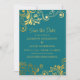 Faire-part de mariage sarcelle vif et audacieux, orné de volutes et de fioritures dorées élégantes et amusantes. Personnalisé avec vos informations au recto et votre photo au verso. Contactez-moi pour obtenir de l'aide pour vos personnalisations ou pour demander d'autres produits Zazzle assortis ou coordonnés pour vos occasions spéciales. La couleur de fond de cette carte est personnalisable lorsque vous utilisez l'outil de conception Zazzle, vous permettant de la changer en n'importe quelle couleur que vous aimez pour assortir vos couleurs de mariage. Achetez cette carte imprimée et/ou sous forme numérique afin de la partager avec vos amis et votre famille par e-mail et sur les réseaux sociaux.