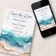 Un design élégant et estival pour votre mariage sur la plage ou à destination! Les vagues écrasantes et les oiseaux de mer et le script moderne donnent à ces derniers la touche d'évasion parfaite pour la plus grande aventure de votre vie. Idéal pour un mariage à destination au Mexique. Commandez vos invitations imprimées et les fournitures de fête ou téléchargez vos invitations numériques dès maintenant pour une journée qu'ils n'oublieront jamais !