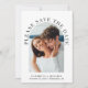 Mariage moderne enregistrer la carte de date avec votre photo dans un cadre en arc entouré par "Please Save The Date" en texte élégant. Sous votre photo, ajoutez vos prénoms, votre date de mariage et votre emplacement. Au contraire, personnalisez la sauvegarde des détails de la date dans une simple typographie.