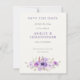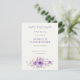 Mariage moderne élégant et élégant, enregistrez la carte de date avec un bouquet floral aquarelle dans les tons violet et lavande. Photo complète de bord à bord à l'arrière. Idéal pour le printemps, l'été et le mariage de automne modernes, boho et rustiques. La typographie serif moderne. Composition classique. Entièrement personnalisable. Contactez-nous pour vous aider à personnaliser ou à customiser vos souhaits.