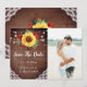Ces cartes de sauvegarde de date présentent un design floral de tournesol aquarelle rustique et de roses rouges avec des guirlandes lumineuses, de la dentelle et un fond en bois. Elles font partie d'une collection qui comprend une gamme complète de cartons d'invitation de mariage et de papeterie assortis. Personnalisez-les avec votre propre texte et photo. Veuillez visiter notre magasin pour voir la gamme complète d'articles que vous pouvez personnaliser pour votre mariage.