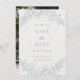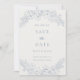 Photo mariage enregistrer les dates avec élégante couronne bleue florale sur arrière - plan couleur neutre.