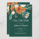 Save The Date Mariage Photo Floral Orange Élégant Vert Émeraude