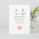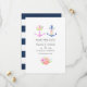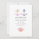 Cartes d'invitation de mariage thème nautique tendance bleu marine et blanc avec une ancre florale aquarelle et une bande bleu marine au verso.