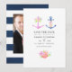 Save The Date Mariage photo floral thème nautique aquarelle