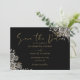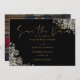 Cette élégante carte gothique florale noire et or à mariage peut être personnalisée avec vos informations en typographie chic avec votre photo spéciale au verso. Conçu par Thisisnotme©