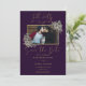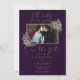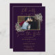 Ce mariage élégant violet et or gothique enregistrer la date peut être personnalisé avec votre photo spéciale et des informations en typographie chic avec vos initiales monogrammes au verso. Conçu par Thisisnotme©