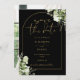 Cette élégante verdure botanique feuille noir, et l'arc doré enregistrer la date invitation peut être personnalisée avec vos informations dans la typographie moderne chic avec votre photo spéciale au verso. Conçu par Thisisnotme©
