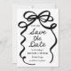 Annoncez votre mariage dans le style avec ce chic et moderne enregistrer la carte de date avec un arc noir audacieux encadrant le design sur un arrière - plan blanc. L'élégant "Save the Date" est affiché dans un script noir manuscrit, créant un ton sophistiqué mais ludique. Personnalisez la carte avec vos noms, date du mariage et emplacement ci-dessous, en vous assurant que vos invités ont tous les détails importants. Le dos de la carte comporte une photo fiançailles verticale et votre site Web mariage, ce qui permet à vos proches de rester informés. Parfait pour les mariages minimalistes, modernes ou noirs et blancs, cette date de sauvegarde ouvre la voie à votre fête inoubliable.