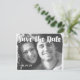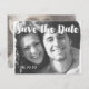 Typographie Whimsical moderne Script Photo Enregistrez la date avec vos photos avant et arrière avec des recouvrements de lin optionnels sur les deux côtés.