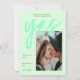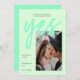 Une carte moderne Save the Date Card avec une palette de couleur néon frais de vert menthe, avec gros caractères Calligraphy Script for Yes et votre image de choix. Toutes les couleurs de cette photo Enregistrer la date Modèle peuvent être changées! Une invitation unique mais abordable Save the Date pour les couples modernes.