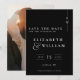 Ce mariage minimaliste noir et blanc sauve la date peut être personnalisé avec vos informations dans la typographie moderne et une photo spéciale au verso. Conçu par Thisisnotme©