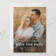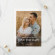 Simple Script Names Photo Wedding Sauvegardez la carte de date avec la photo de fond plein et la typographie de superposition sur le devant. Le dos a une deuxième photo et des détails supplémentaires. Cliquez sur le bouton Modifier pour customiser cette conception.