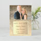 Invitation élégante et moderne de mariage avec écriture dorée fausse avec photo et dentelle florale unique pour annoncer la date de votre mariage