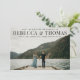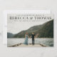 Cette photo moderne enregistrer la date donne un ton élégant à votre prochain mariage. Ce produit permet aux couples de présenter un paysage de fond saigné ou une photo horizontale, de customiser leurs noms et les détails de l'événement. Ajoutez votre site Web mariage pour fournir aux clients des informations supplémentaires si vous le souhaitez.