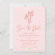 Annoncez votre grande journée avec ce palmier d'inspiration tropicale, gardez la carte datte, avec ses palmiers oranges dessinés à la main et posés contre un arrière - plan rose vif. "Save the Date" s'affiche élégamment dans un script manuscrit dynamique, avec un espace ci-dessous pour vos noms, date mariage et emplacement. Le verso de la carte présente une photo fiançailles verticale avec votre site Web mariage soigneusement affichée ci-dessous. Parfait pour un mariage ou une fête de plage, ce coucher de soleil romantique ajoute une touche chaleureuse et moderne à votre suite de papeterie mariage.