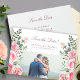 Elégant mariage de photos florales rose vif et romantique, enregistrez la carte de date avec de beaux roses d'aquarelle avec feuillage vert et feuilles. ++++++++++ Facile à personnaliser avec votre photo et votre texte des deux côtés ! +++++++++++++ Convient pour le thème du jardin, floral, printemps été ou automne jardin extérieur ou rustique moderne grange ou mariages de ferme.