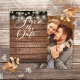 Ce rustique enregistrer la carte de date comporte des lumières à cordes et un script élégant enregistrer la date au-dessus de vos détails set dans la typographie élégante sur un arrière - plan de panneaux de bois rustique et photo au verso. Conçu par Thisisnotme©