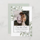 Ces magnifiques mariages, à l'exception des cartes datées, présentent votre photo entourée de sprigs d'aquarelle peints à la main de feuilles d'eucalyptus et de feuillage dans les tons menthe, mousse et vert sauge. La légende indique : Enregistrer la date dans des lettres de script élégantes. Il y a de l'espace pour vos noms, la date et l'emplacement du mariage ci-dessous. Simple, rustique et élégante, cette carte est le moyen idéal de faire connaître à vos amis et à votre famille votre mariage à venir.