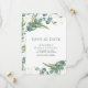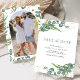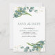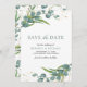 Éblouissez vos invités avec cet élégant enregistrer la date avec de beaux feuilles d'eucalyptus et la typographie moderne. Ajoutez simplement les détails de votre événement sur ce modèle facile à utiliser et ornez cette carte avec votre photo préférée pour en faire une carte unique enregistrer la carte de date.