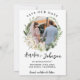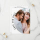 Elégant design minimaliste photo en noir et blanc avec couronne botanique, mariage d'hiver simple et classe sauvez l'invitation de la date. Idéal pour mariage classique moderne, mariage vintage et mariage formel. Explorez la collection complète pour les articles correspondants. Cliquez sur le bouton Modifier pour customiser ce design.Le design comprend la photo d'un couple à l'avant et la couronne botanique à l'arrière avec la photo Explorez la papeterie mariage en noir et blanc.